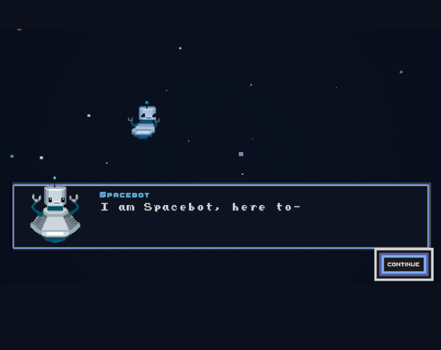 We created Spacebot during Buddy Jam. It's an unfinished prototype - you can see a cut scene, select the first level, and shoot around a map (win/lose). The orginal itch page was taken down, so I'm re-posting (so hopefully we can look back one day and see how far we've come in our game dev journeys)